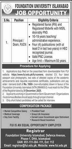 Candidates, if you are seeking Foundation University Jobs 2025 in Islamabad, Apply Online yes. Then it would help if you tried to complete the Foundation University Jobs because here you can easily apply for this vacancy: Principal/ Dean.