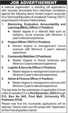 Vacancies Details Of National Organization Jobs 2025 In Peshawar