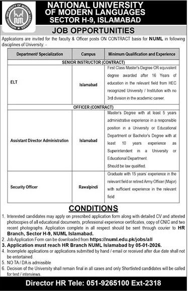 Vacancies Details Of National University of Modern Languages Jobs 2025