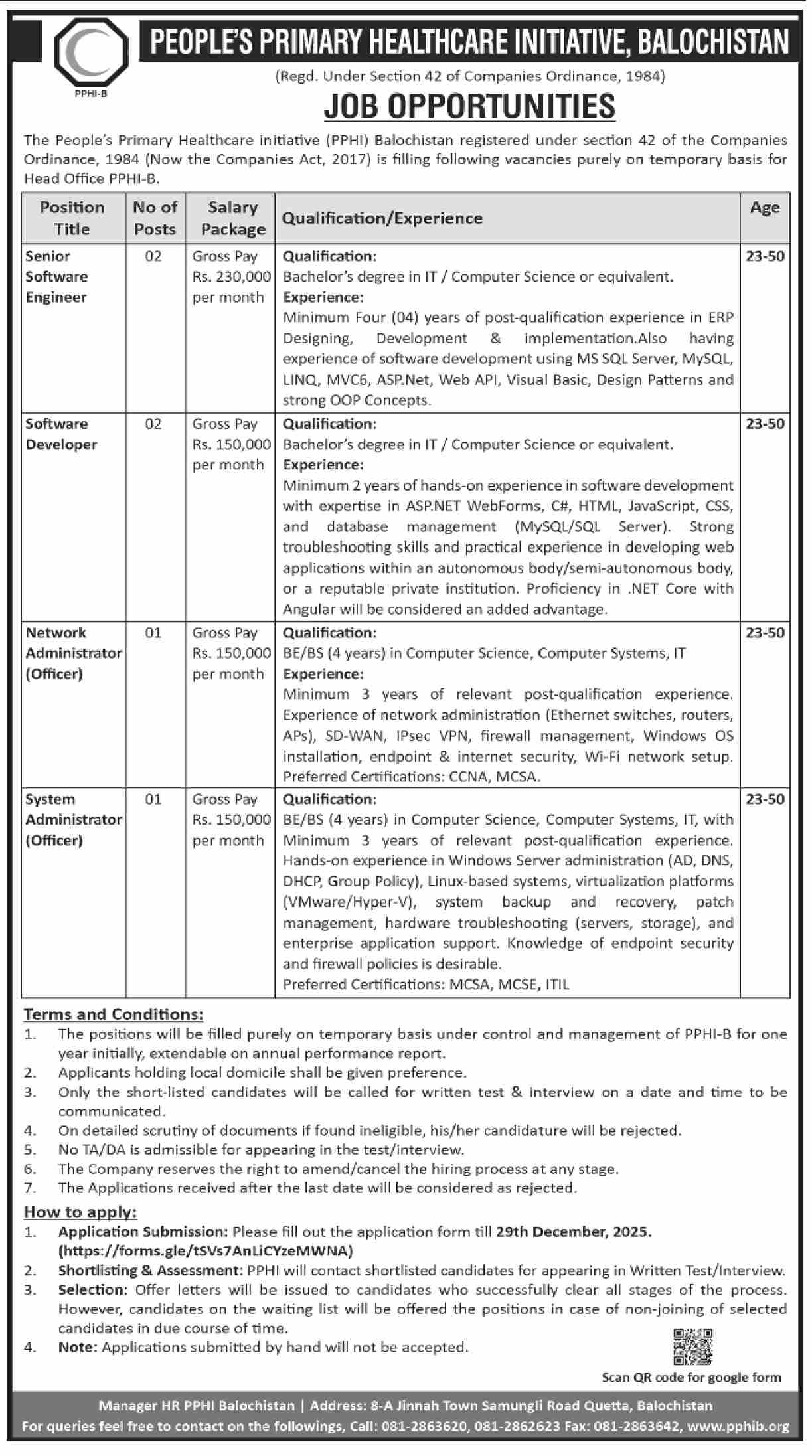 Candidates, if you are seeking Network Administrator Officer Jobs 2025 in Quetta, Apply Online yes. Then it would help if you tried to complete the Network Administrator Officer Jobs because here you can easily apply for these vacancies: Senior Software Engineer, Software Developer, Network Administrator (Officer), and System Administrator (Officer).