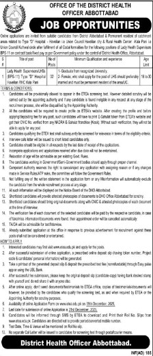 Candidates, if you are seeking Office of the District Health Officer Abbottabad Jobs 2025, yes. Then it would help if you tried to complete the Office of the District Health Officer Abbottabad Jobs because here you can easily apply for this vacancy: Lady Health Supervisor.